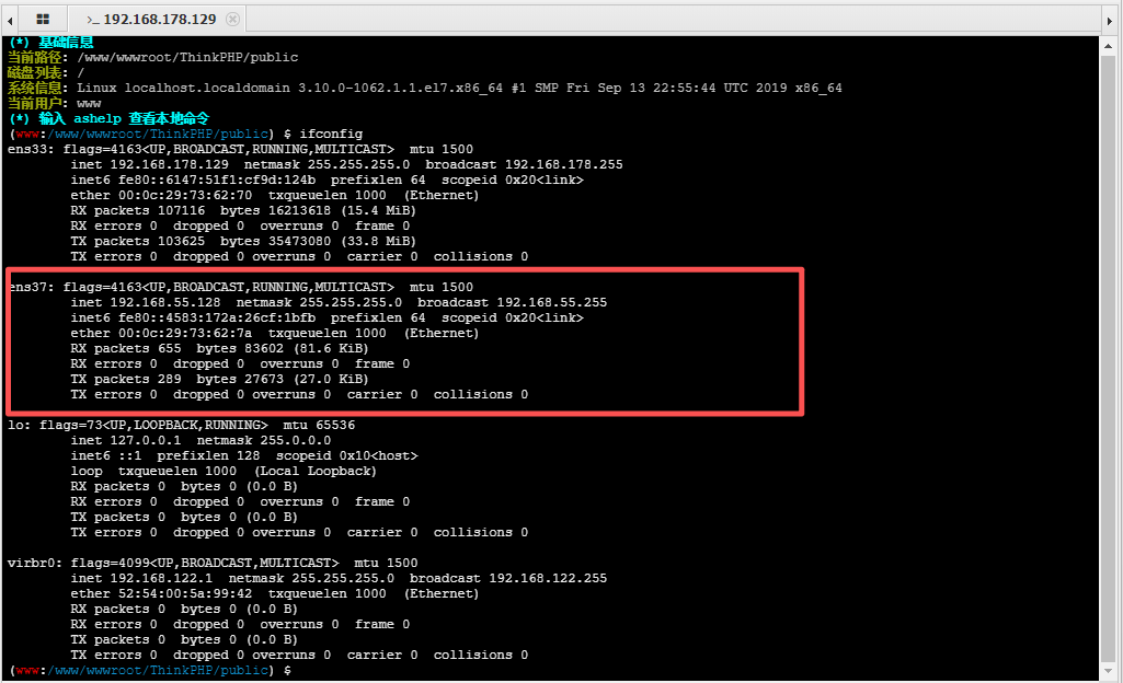 查看一下Centos的信息发现还有一个55的网段