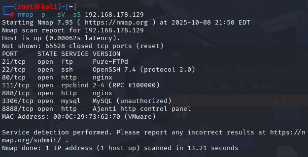 nmap -p- -sV -sS 192.168.178.129