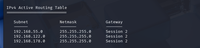run autoroute -p #查看路由信息