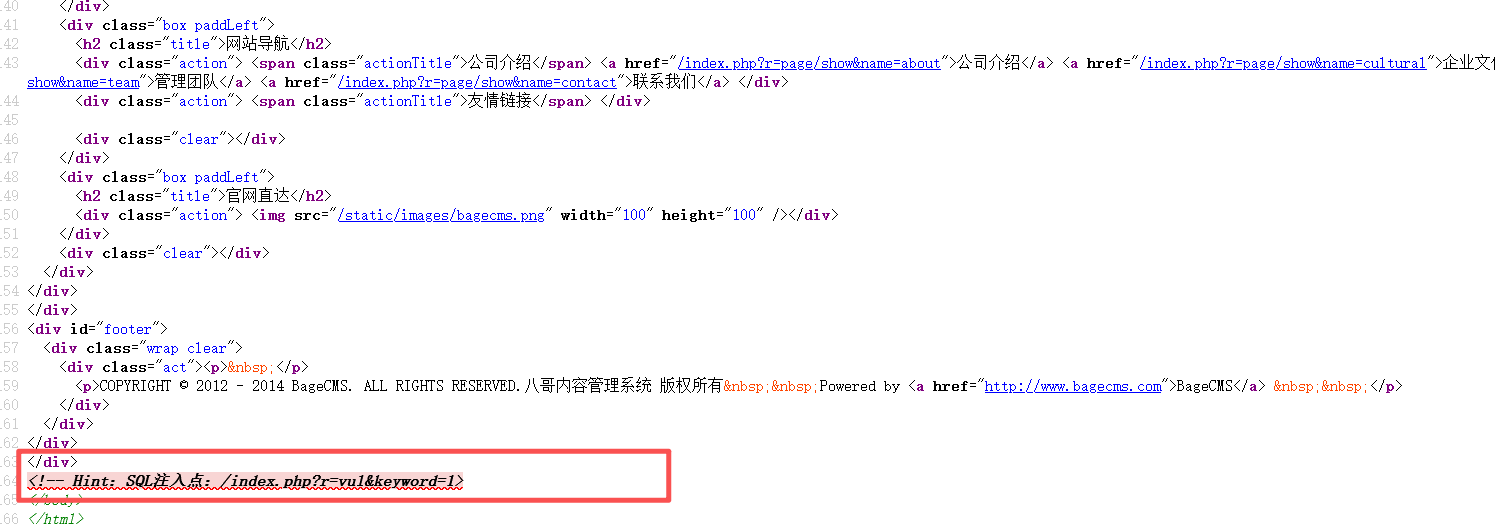 查看源码,提示 SQL 注入点