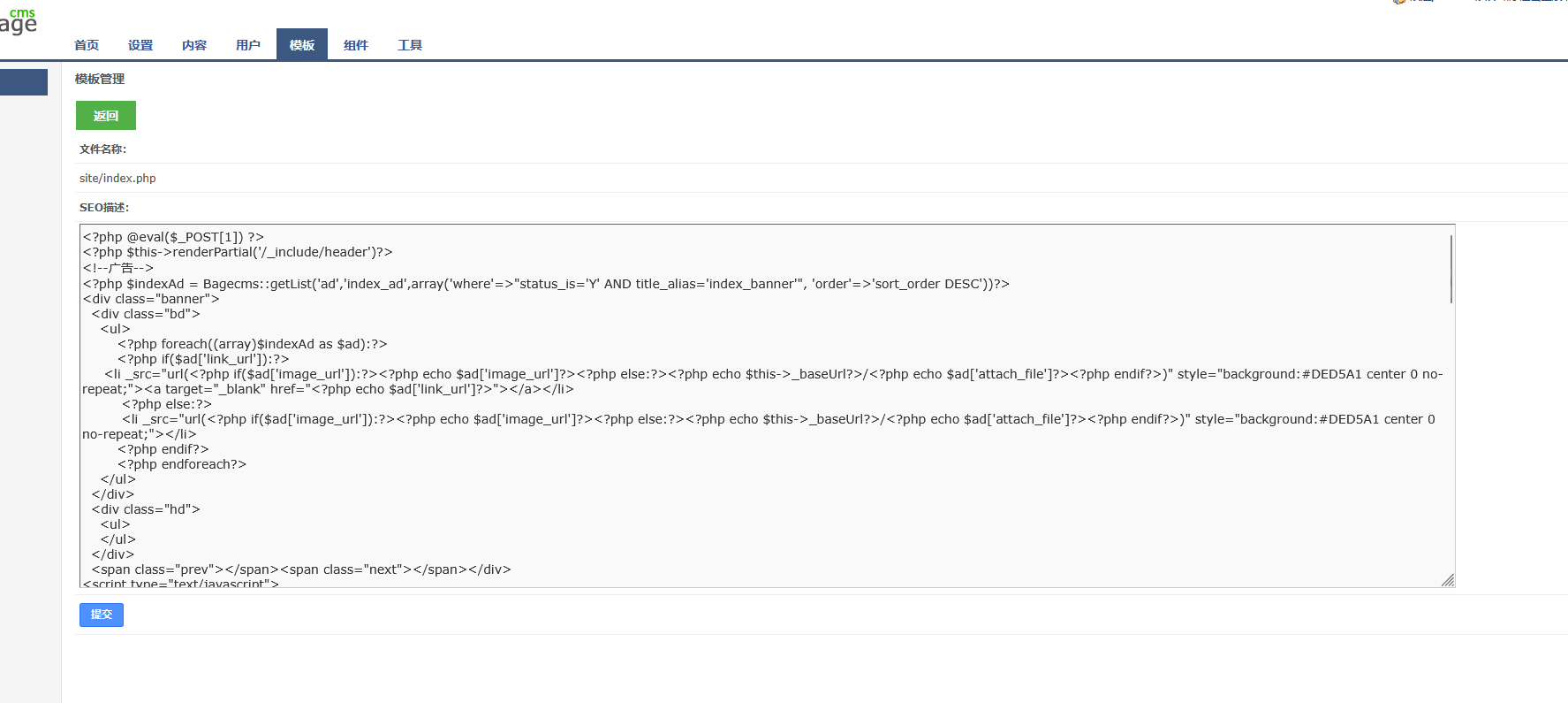 登录后发现网站使用了很多模块化文件。而且都是php文件格式,我们直接在其中的一个php文件中写入一句话木马,然后用蚁剑连接,注意这里的网址使用的是模块化,不能直接加在网站上,要用?r=模块文件的方式访问模块文件,再用蚁剑连接.