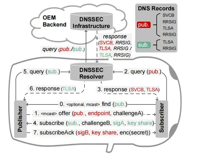 图 3、面向汽车发布-订阅系统的基于DNSSEC的认证与授权方案