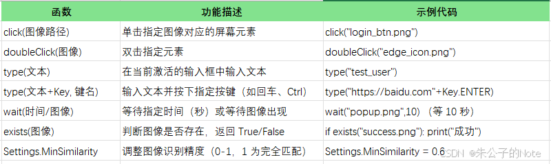 if exists("login_button.png"): # 查找图像click("login_button.png") # 点击type("username_field.png", "user") # 输入文本type(Key.ENTER) # 按回车