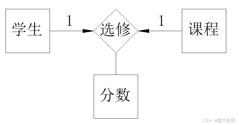 以后有多门选修课(上面的E-R图右边的1改成n),他的关系模式应如下(两张表):
