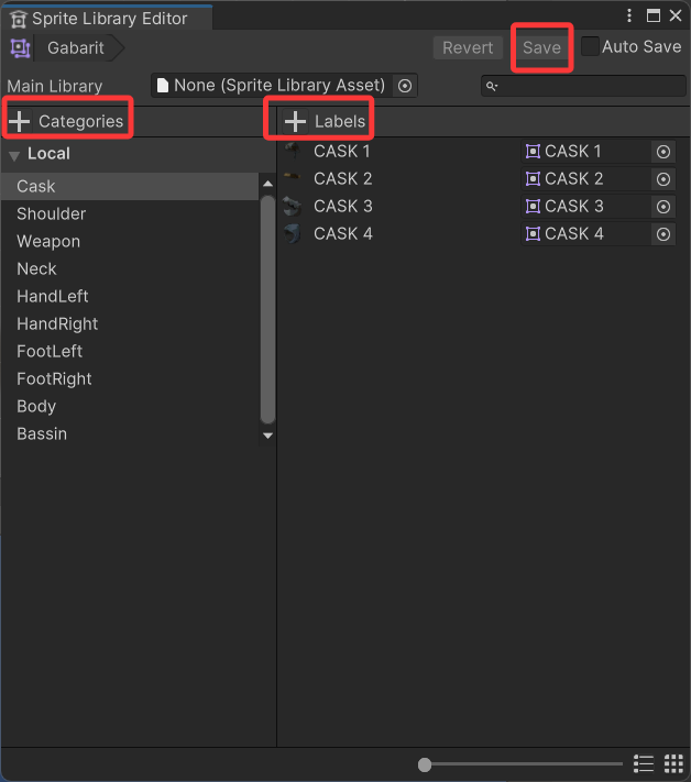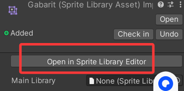 接下来,创建一个Sprite Library Asset,创建方式是在Project窗口右键—Create—2D—Sprite Library Asset。创建后点击: