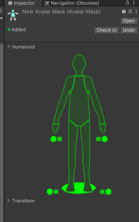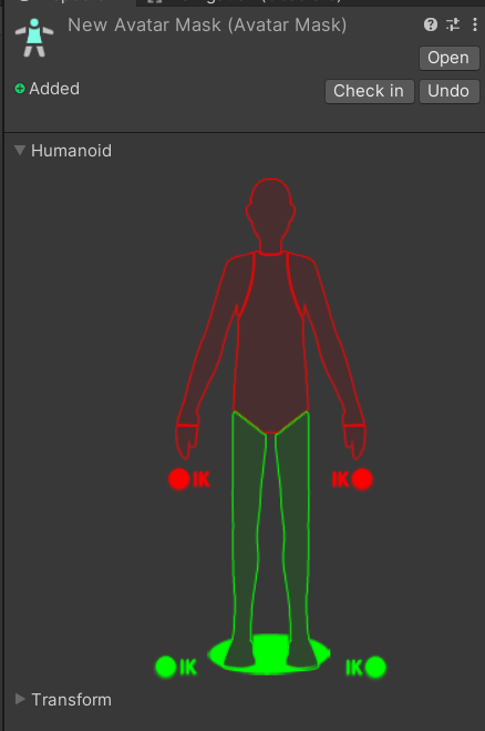 若想只覆盖下半身,需要创建遮罩:在Project窗口右键Create Avatar Mask即可创建动画遮罩。