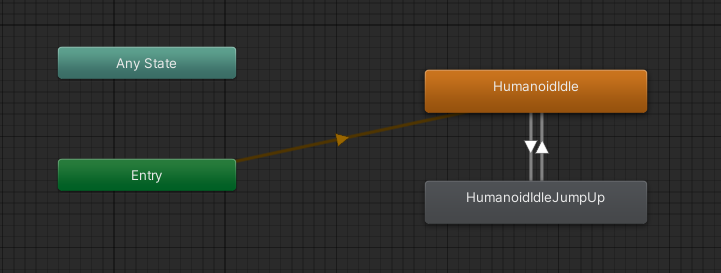 实例中想要实现的是:人物在待机时播放待机动画,按下空格键播放跳跃动画并跳至平台上。构建如下状态机并与人物模型关联: