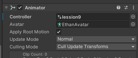 3、需要开启Apply Root Motion。在模型的Animator脚本处勾选即可。