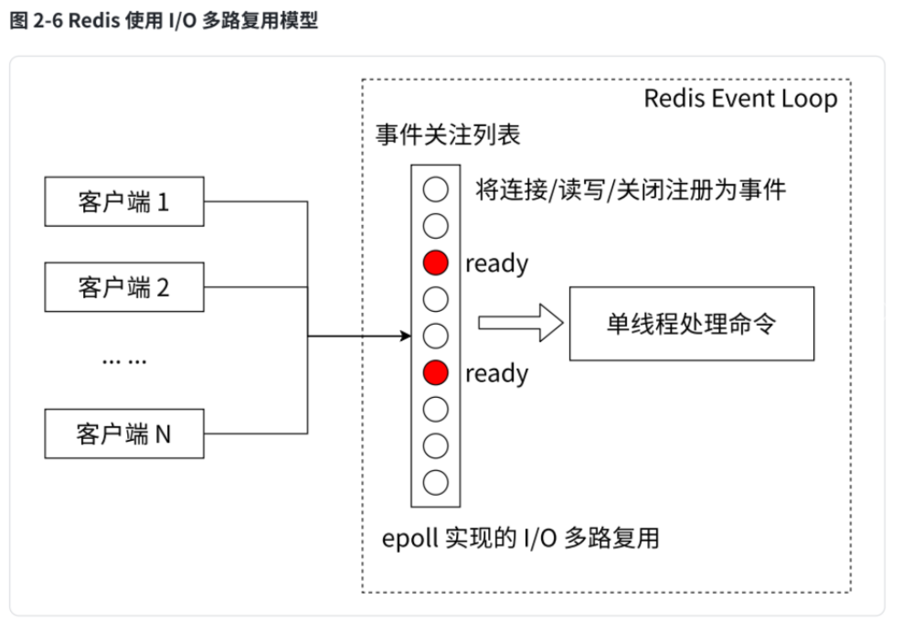 redis使用epoll作为IO多路复用技术实现,redis中事件处理模型将连接,读写,关闭都变为事件,就在网络IO上减少了时间,在业务逻辑不复杂情况下,这样就可以高效处理请求了,要是业务逻辑复杂,就会在处理业务上等待时间,就会阻塞住。