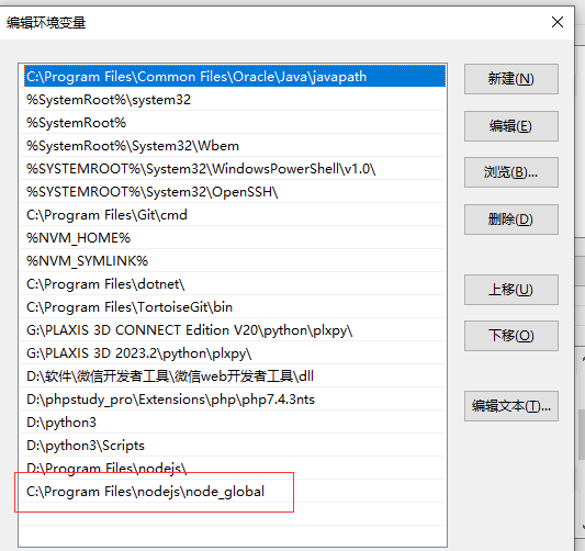 说明已经安装成功,但是未配置到系统环境中,需要把C:\Program Files\nodejs\node_global配置到全局环境中