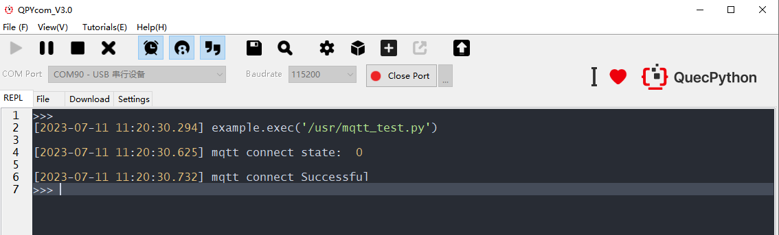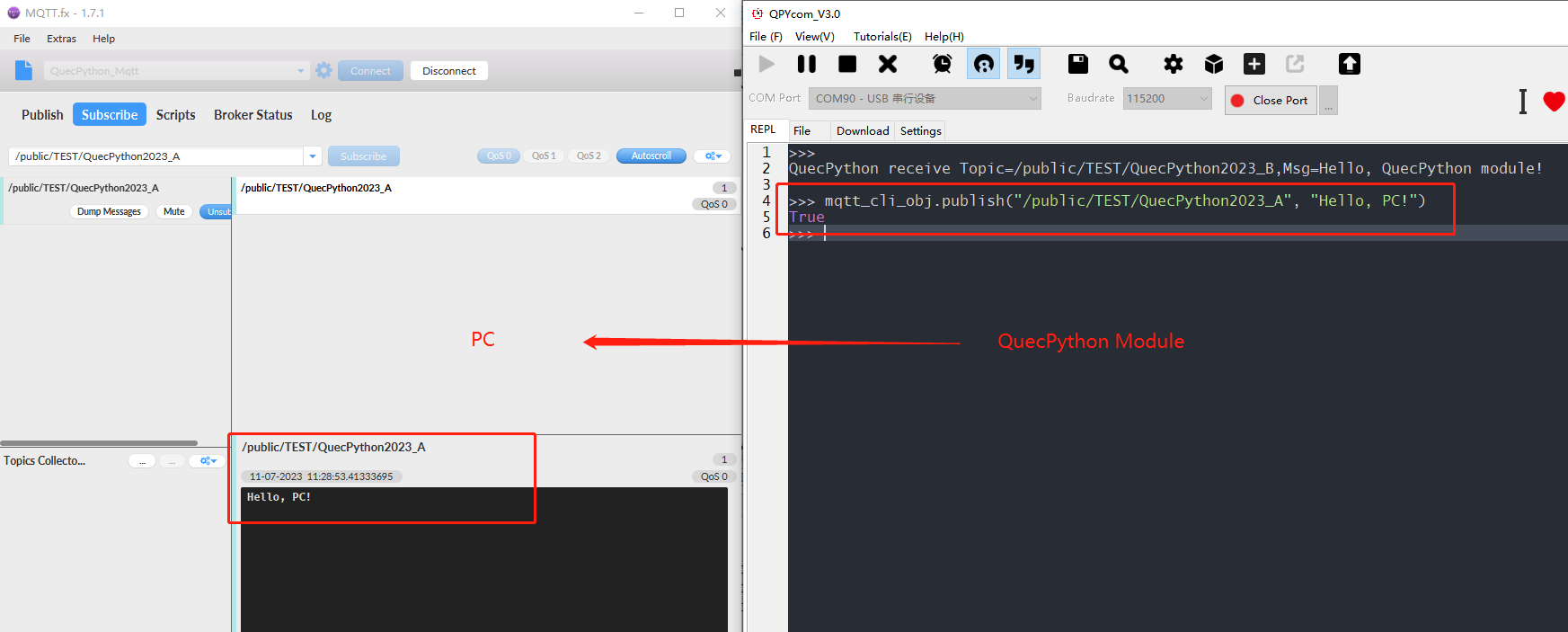 mqtt_cli_obj.publish("/public/TEST/QuecPython2023_A", "Hello, PC", qos=0)
