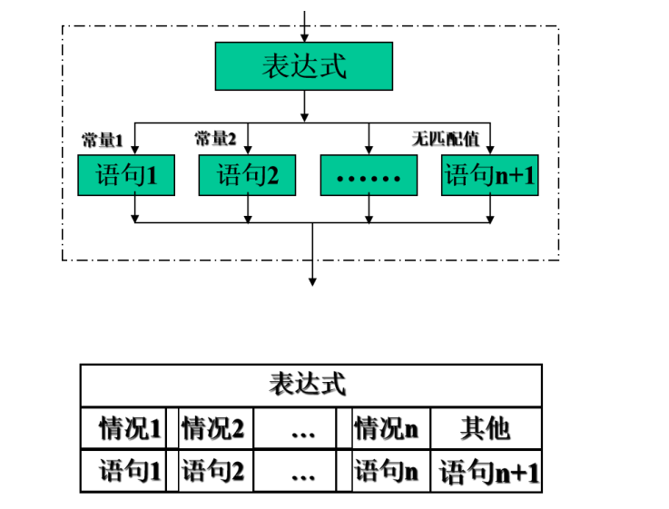 ②若表达式的值与某个常量表达式的值相等时,执行case后面语句;若没有相等的值时,执行default后面的语句。