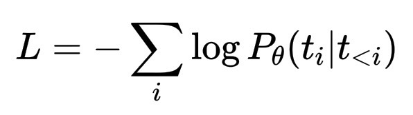 L = - \sum_i \log P_\theta(t_i | t_{<i})