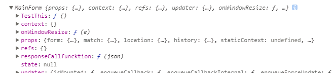 再看下面这段代码,这是写在react中的一段箭头函数,这个箭头函数所处的对象是MainForm这个类,所以在调用之后输出的就是MainForm这个对象