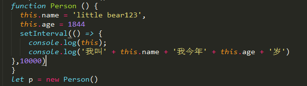 例如这段函数中,this指向的是Person对象,可以看到控制台打印结果,此时的箭头函数所处的宿主对象是Person,所以this指向的是person
