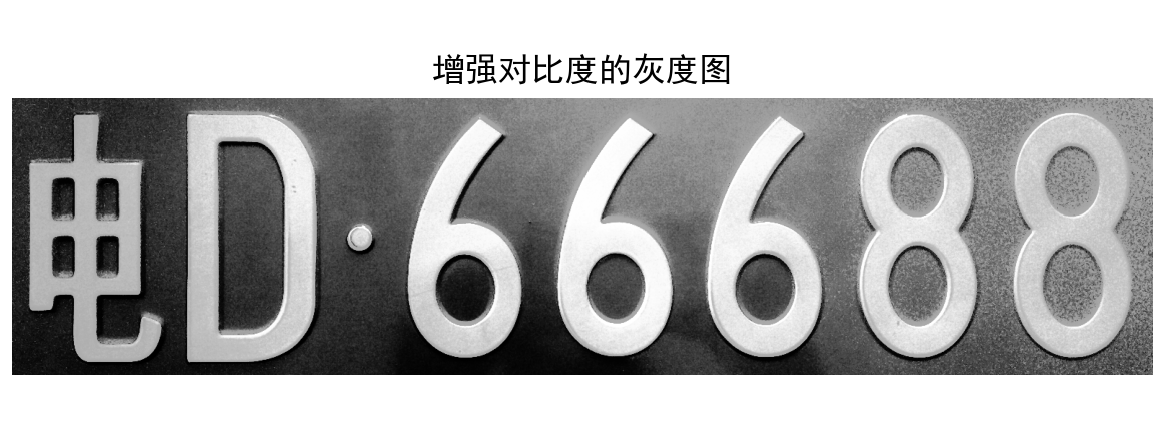 直方图均衡化:对车牌区域的灰度图进行直方图均衡化,增强全局对比度。