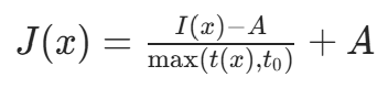 其中 I(x) 为雾图,A 为大气光,t(x) 为透射率, 为最小透射率(避免过暗)。