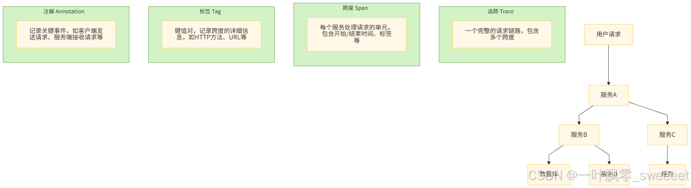 - 注解(Annotation):用于记录关键事件,如客户端发送请求(Client Send)、服务端接收请求(Server Receive)等。