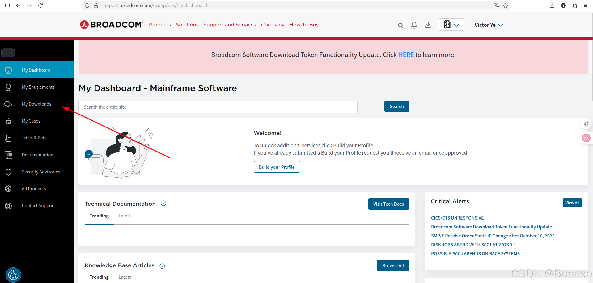然后就可以进入到我的面板界面,点击 my downloads: