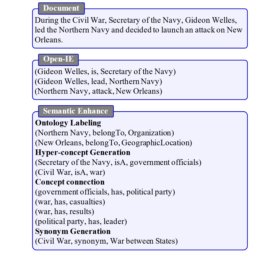 本文首先通过三种语义扩展方法从 Tfact\mathcal{T}_{fact}Tfact 动作中生成新的概念节点 Nc\mathcal{N}_cNc 和 Elink\mathcal{E}_{link}Elink,Eexp\mathcal{E}_{exp}Eexp: