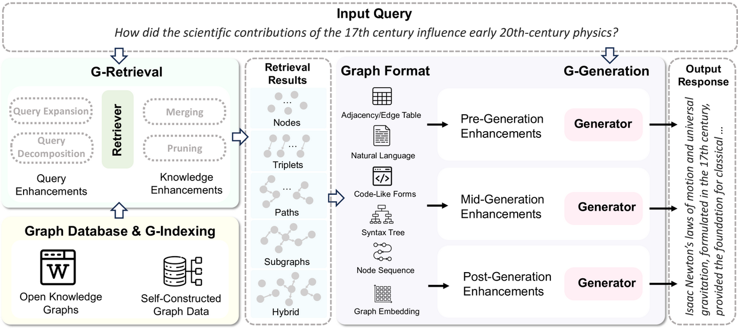 GraphRAG利用图结构组织知识库,可以实现更精确和全面的检索,捕获关系型知识,并促进更准确、上下文感知的响应。这类方法通常涉及两个关键步骤:第一是构建一个包含所有文档全局信息的图结构知识库索引,第二是从该知识库中检索以获得所需的参考信息。
