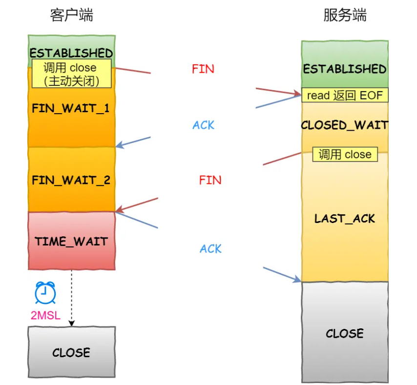 这样我们可以保证双方都要断开连接。就好比我们谈恋爱的时候,我们分手要进行双方的同意。