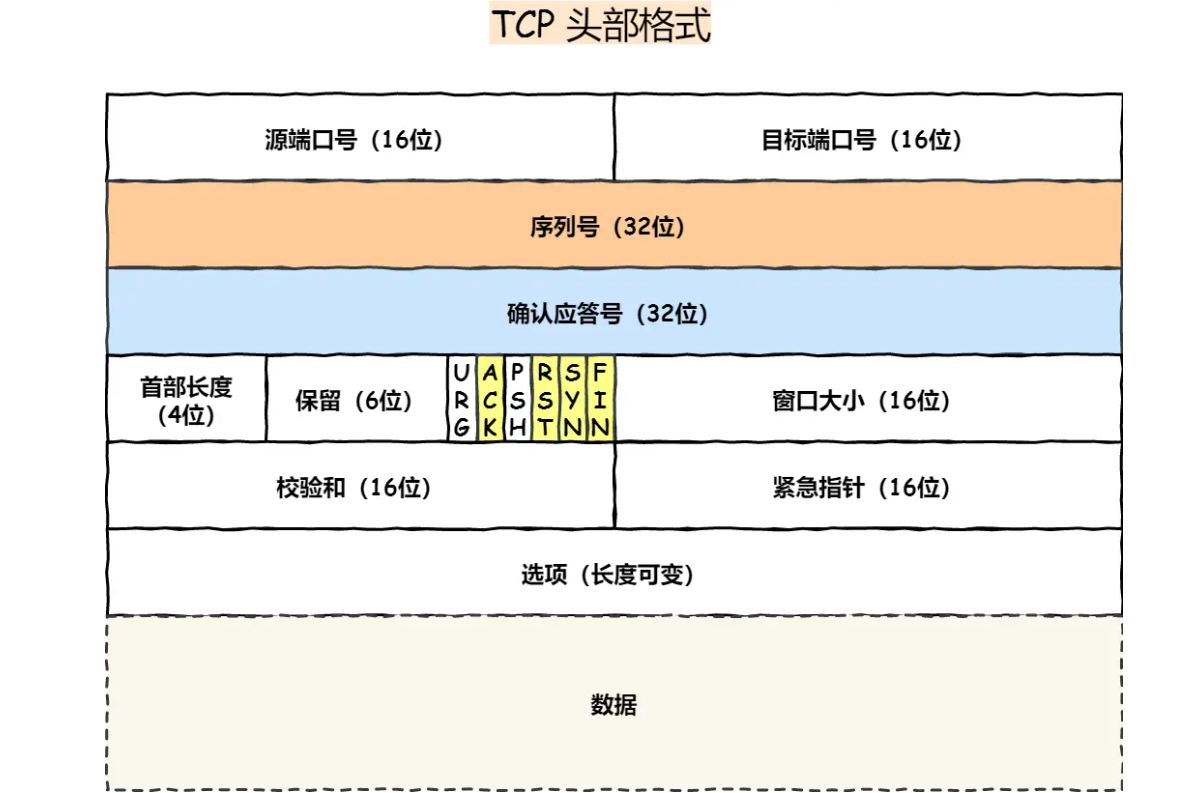 然后还有确认序号,确认序号的是为了保证可靠性而出现的,该序号以前的报文全部送达了。