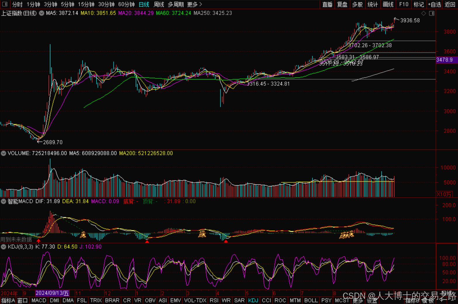上证指数今天放量站上3900点继续冲击4000点,量能站上5日均量线收中阳线,目前均线多头排列,短期均线也呈现多方形态。板块上贵金属以及科技类个股今天表现较好。