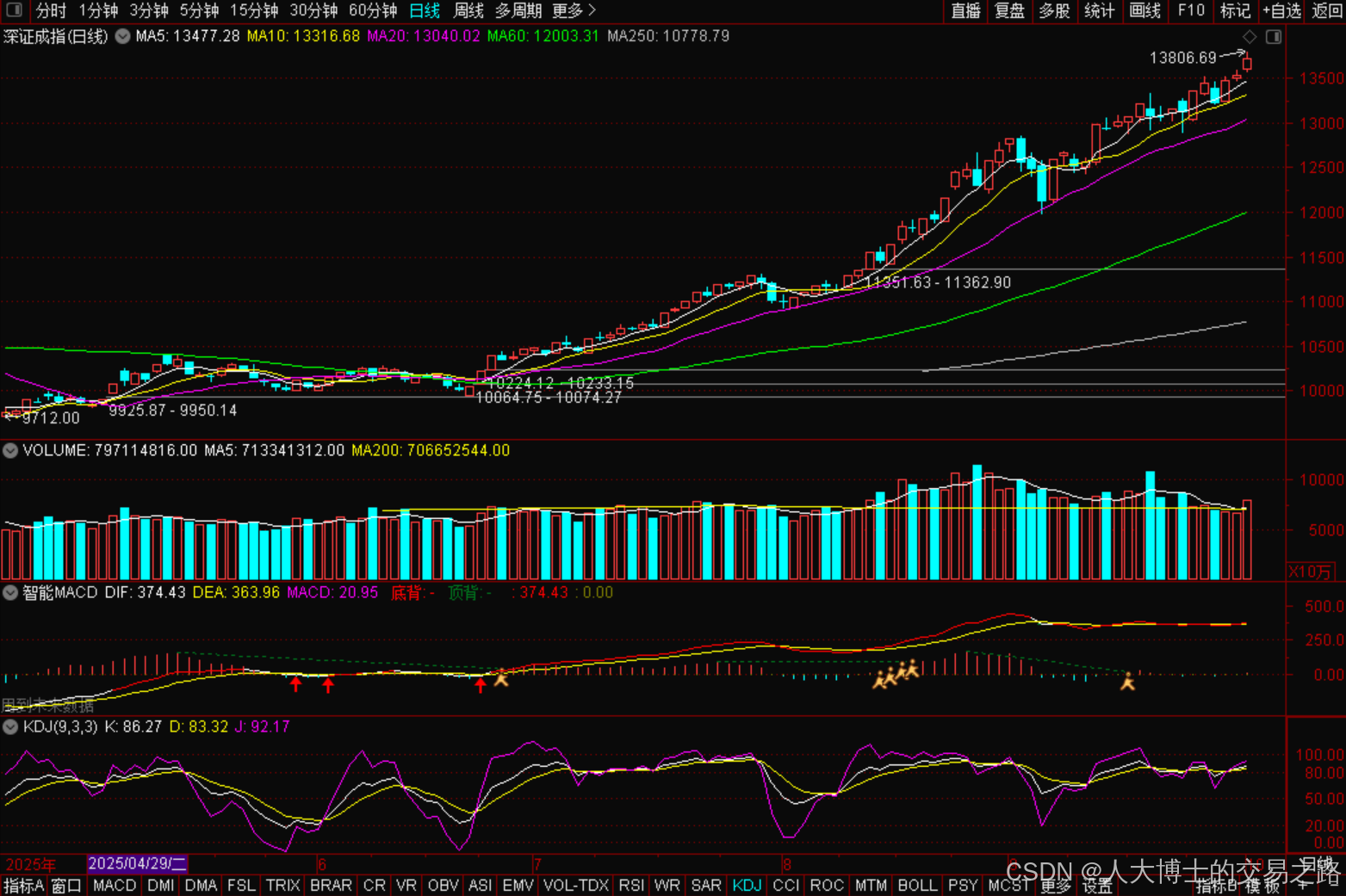 深证指数今天收小阳线,日内创近期新高,量能再次站上5日均量线,均线目前多头排列继续趋势的走势。个股今天上涨多于下跌,总体行情较好。