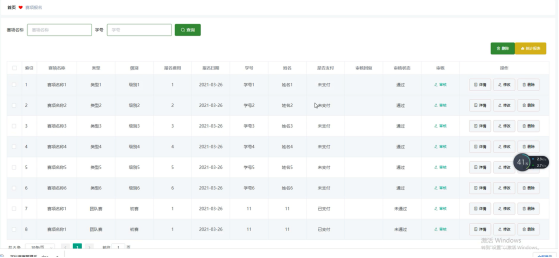 管理员可查看所有赛项报名信息,并可对其进行审核、修改和删除操作,赛项报名管理界面展示如图所示。