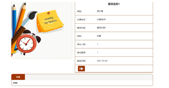 学生可选择赛项查看详情信息,登录后可进行报名操作,赛项详情界面展示如图5-4所示,报名界面展示如图所示。