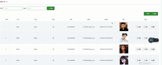 管理在学生管理界面可查看所有学生信息,并可对其进行修改和删除操作,同时也可添加学生信息,学生管理界面展示如图所示。