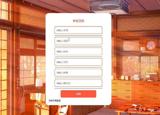 没有账号的学生用户可进行注册操作,学生注册界面展示如图所示。
