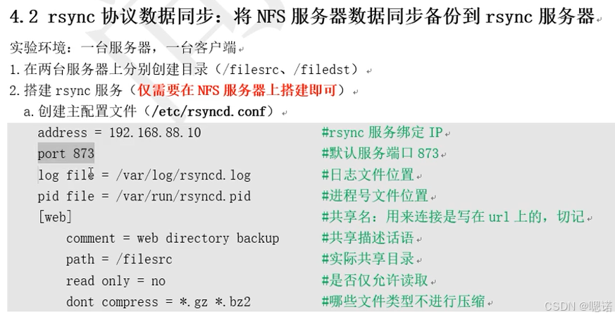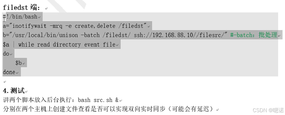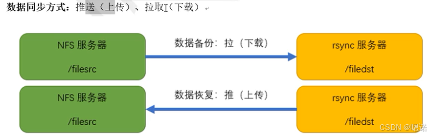 mkdir -p /filesrc # 源目录(NFS 共享数据存放处) mkdir -p /filedst # 目标目录(客户端同步后存放处)