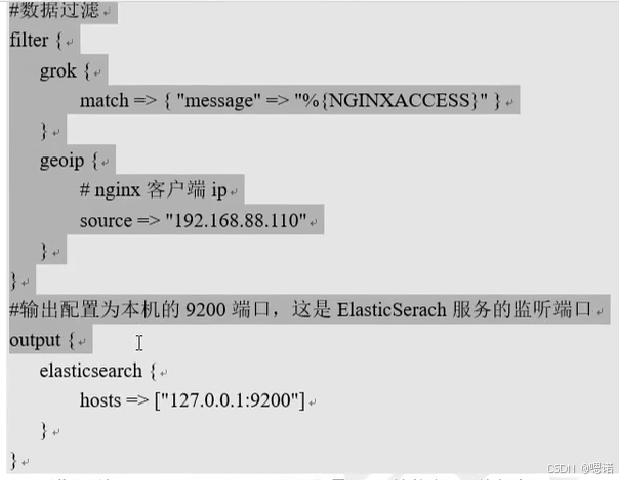 - 注释 Elasticsearch 输出(本实验直连 Logstash,若 ELK 无 Logstash 则需配置 Elasticsearch 输出,此处按步骤调整):