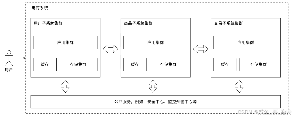 架构示意图:每个子系统都包含独立的应用集群、缓存和存储集群。