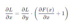 实现方式就是添加一条跳跃连接(skip connection),将输入 x 直接加到输出上: