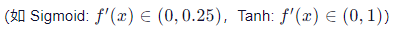 - 多个小于1的数连乘 → 指数级衰减 → 前层梯度趋近于0。