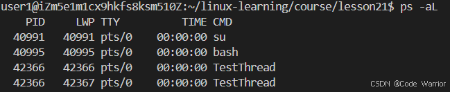 - 示例:主线程的 LWP 与进程 ID(PID)相同,其他线程的 LWP 为独立数值。