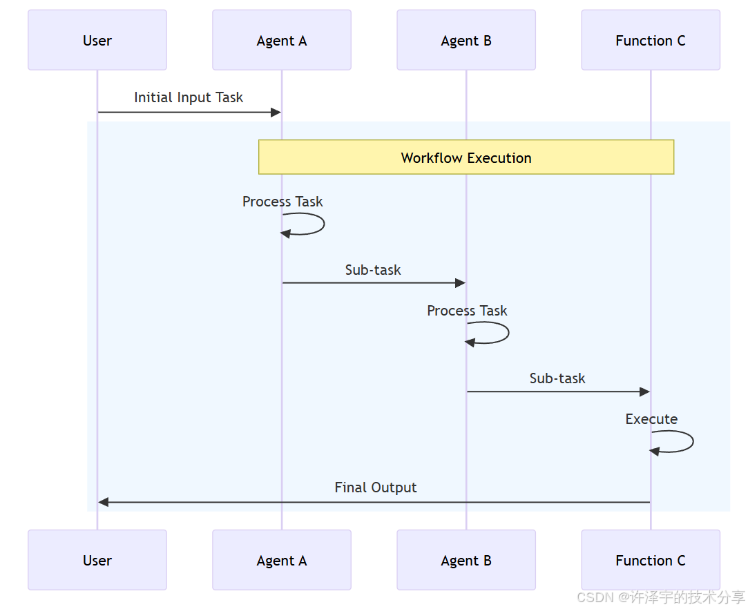 var workflowBuilder = new WorkflowBuilder(new AgentExecutor(invoiceAgent)).AddEdge(invoiceAgent, policyAgent, condition: result => result.RequiresPolicyCheck).AddEdge(policyAgent, logisticsAgent, condition: result => result.RequiresLogisticsInfo).WithOutputFrom(logisticsAgent);var workflow = workflowBuilder.Build();// 执行复杂的业务流程