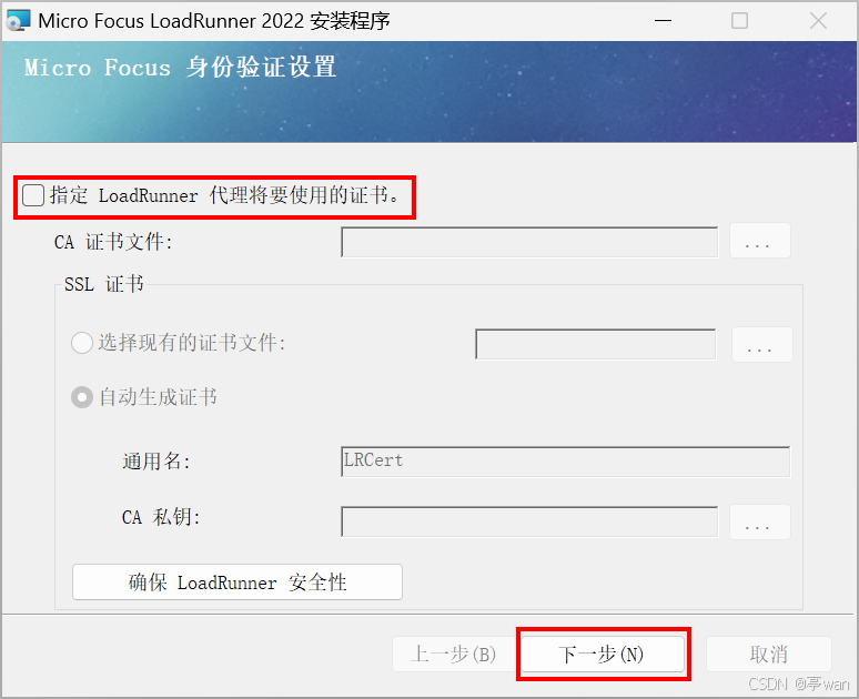 9、取消勾选指定 LoadRunner 代理将要使用的证书 --> 点击下一步