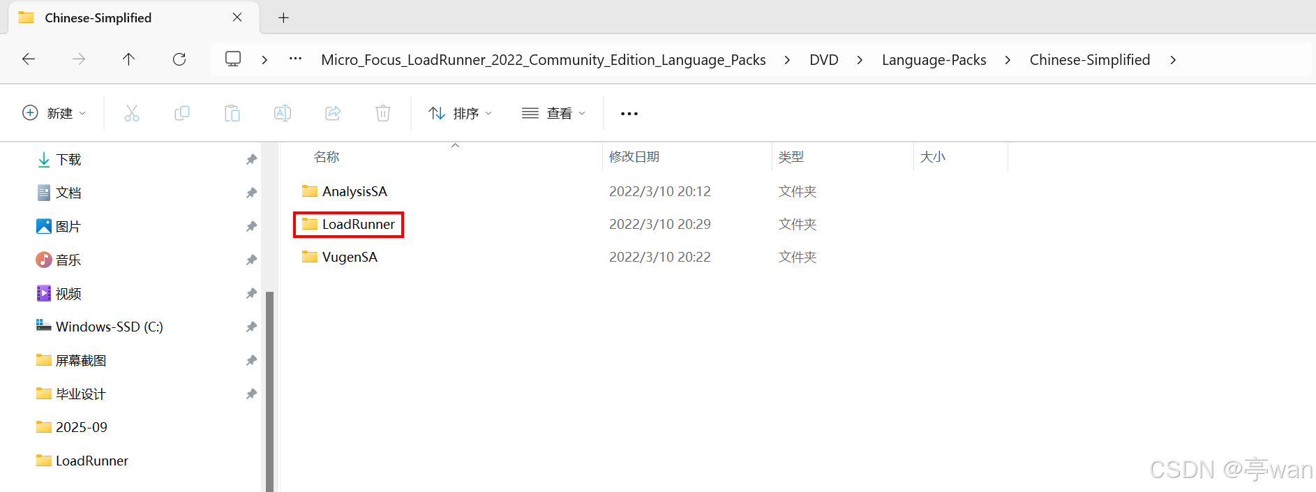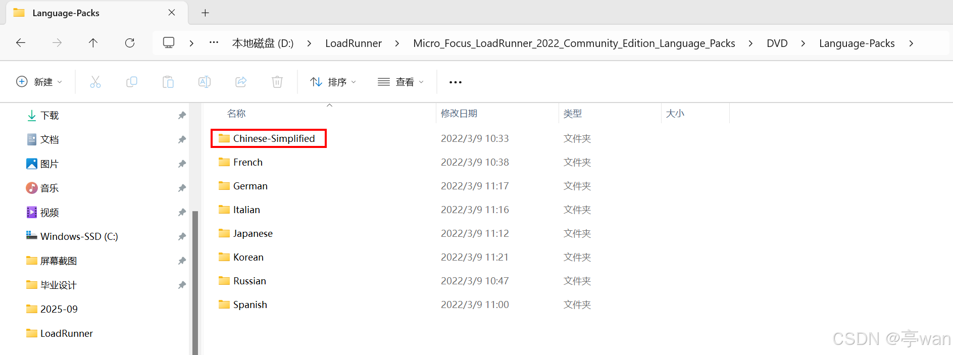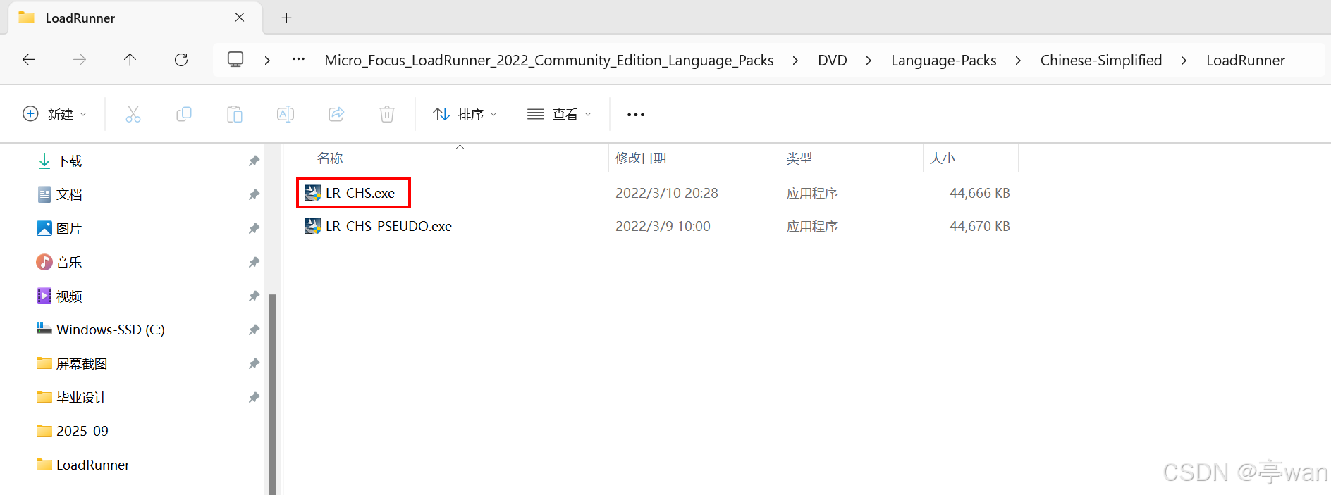 3、打开安装的Micro_Focus_LoadRunner_2022_Community_Edition_Language_Packs目录 --> DVD --> Language-Packs --> Chinese-Simplified --> LoadRunner --> 双击LR_CHS.exe