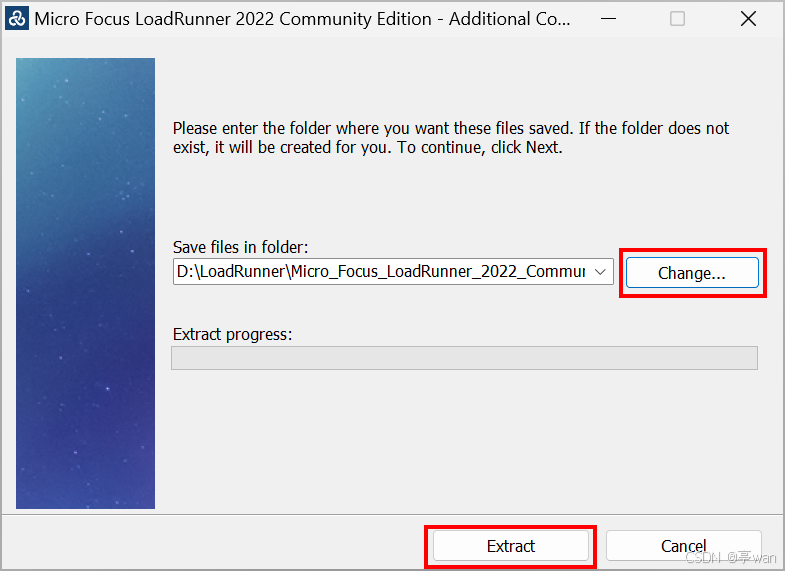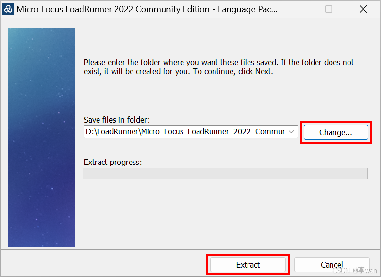 2、点击Change选择文件夹(可忽略)--> 点击Extract