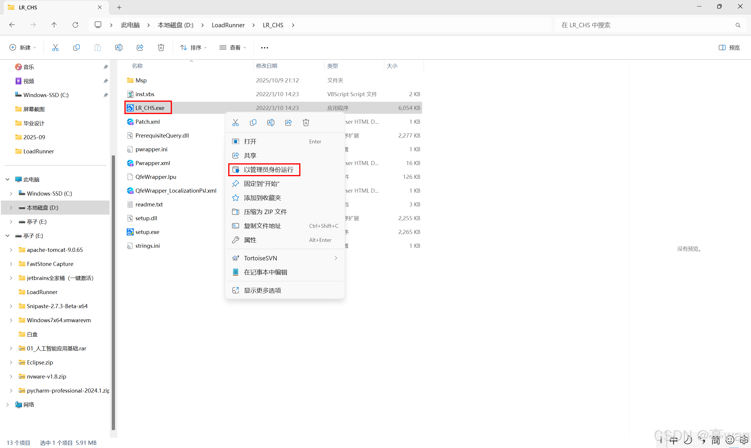2、右键LR_CHS.exe --> 以管理员身份运行