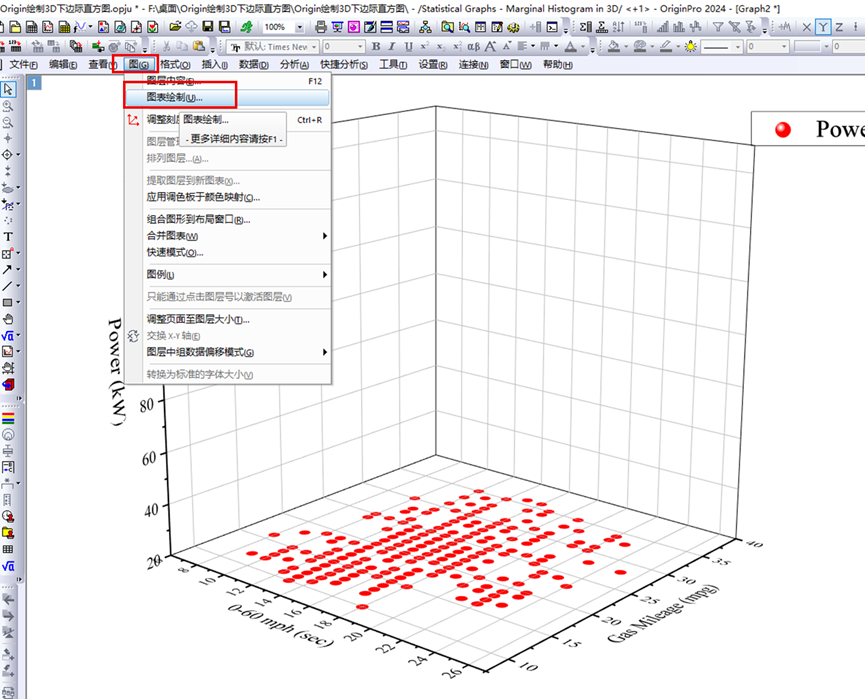 2.选中Z列,点击绘图—点击3D—选择3D散点图,