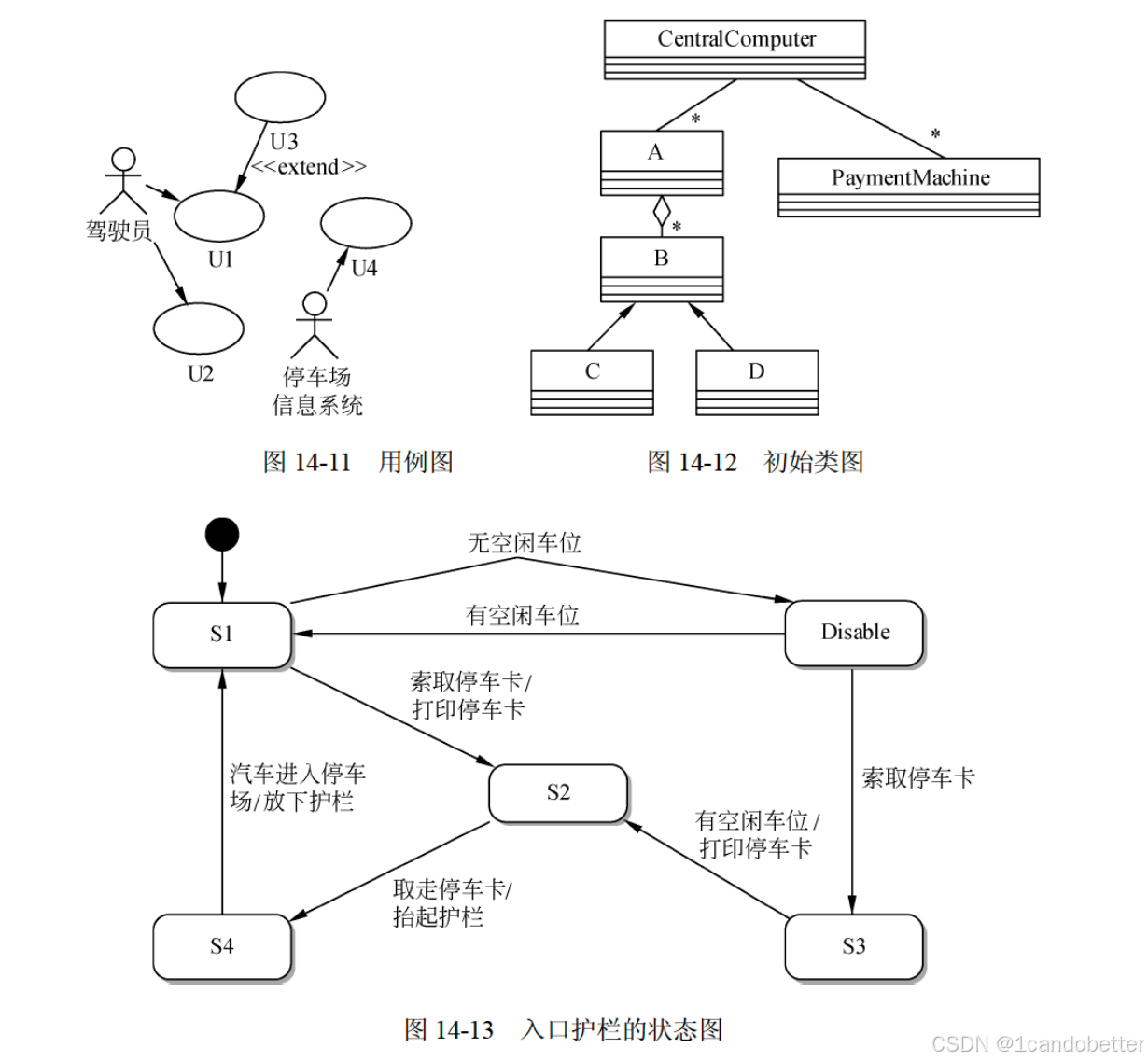 问题1:根据说明中的描述,使用表14-3给出的用例名称,给出图14-11中U1、U2和U3所对应的用例。
