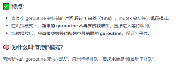 正常情况下,当一个 Goroutine 获取到锁后,其他的 Goroutine 开始进入自旋转(为了持有CPU)或者进入沉睡阻塞状态(等待信号量唤醒).但是这里存在一个问题,新请求的 Goroutine 进入自旋时是仍然拥有 CPU 的,所以比等待信号量唤醒的 Goroutine 更容易获取锁,用官方话说就是,新请求锁的 Goroutine具有优势,它正在CPU上执行,而且可能有好几个,所以刚刚唤醒的 Goroutine 有很大可能在锁竞争中失败而在饥饿模式下,新加入的goroutine不参与抢锁,会加获取锁的goroutine队列末尾排队,所以是排在最前面的goroutine会优先获取锁。