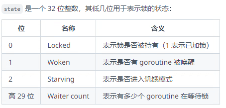 state:用于表示锁的状态,包括是否加锁、是否有等待者、是否处于饥饿模式等。