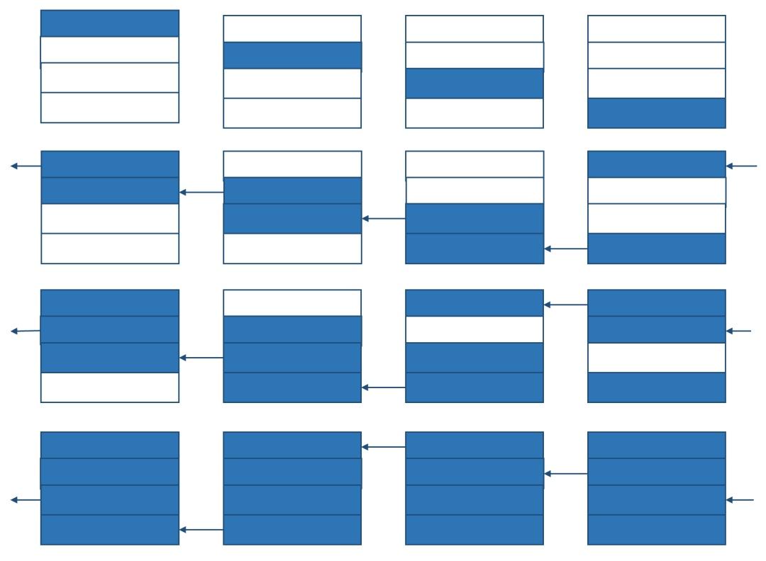 高效实现一个集群通信的关键是如何充分利用设备和设备之间的带宽,基于环状(ring)通信实现的集群通信算法就是这一思想的体现。我们以 reduce-scatter 为例来看看环状通信算法是怎么工作的。